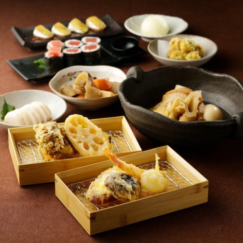 コースは全4種類。旬菜、旬魚の天ぷらに、前菜盛り合わせ。巻物や締めの蕎麦まで安心してお任せ下さい。