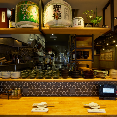 職人の手仕事を目の前で楽しむことができるカウンターのお席はお一人でもデートにもピッタリです。オープンカウンターならではのライブ感をお楽しみください。