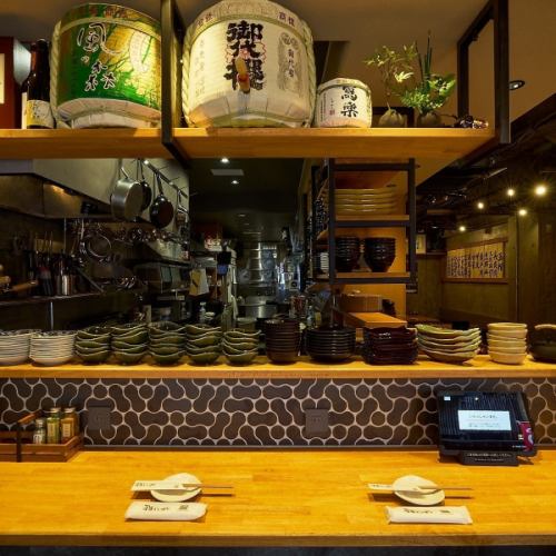 【カウンター席:4名様まで】お一人様・デートにおすすめ◎プライベート空間。調理の過程を楽しめるオープンキッチンのカウンター席は、まさに特等席!職人の手捌きや音、香りを間近で感じられるライブ感が魅力です。お一人様でもゆったりと落ち着いてお過ごしいただけます。お気軽にご利用ください。