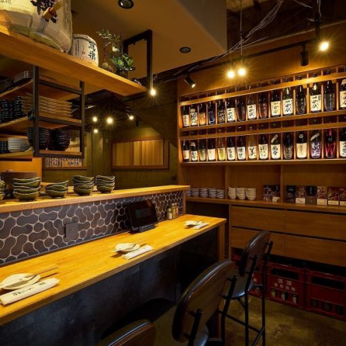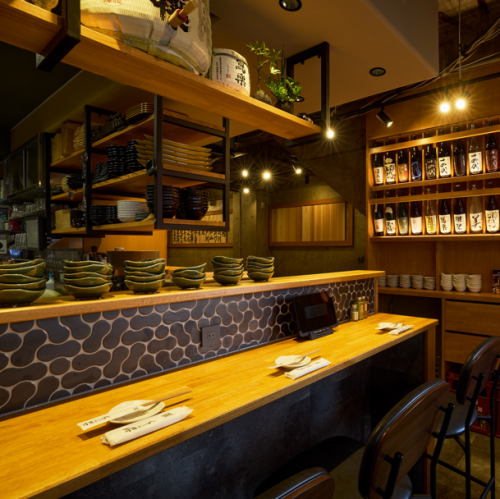 しっぽりカウンター席。職人の手捌きを間近に望むオープンキッチンのカウンター席は、音と香りが広がるライブ感溢れる特等席。お一人様でも気兼ねなく、調理の過程を五感で楽しみながら、ゆったりと落ち着いた時間をお過ごしいただけます。